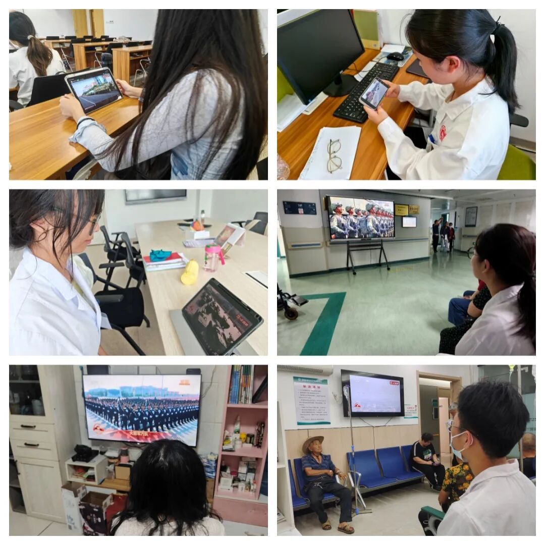 “虽然观看地点不同,但内心的激动是一样的。”在办公室里,教师党员们打开电脑,一边观看一边与同事交流感悟;在实习医院里,员工党员通过手机端收看,利用实习间隙接受思想洗礼;在实验室里,研究生党员们借助ipad默默观看,为受阅部队的英姿深受教育鼓舞;在家里,新生和老生们通过电视直播共襄盛举。师生党员普遍反映,本次同步观看活动,进一步激发了民族自豪感与时代使命感,深化了作为公卫人“护佑生命、服务人民”的责任担当。