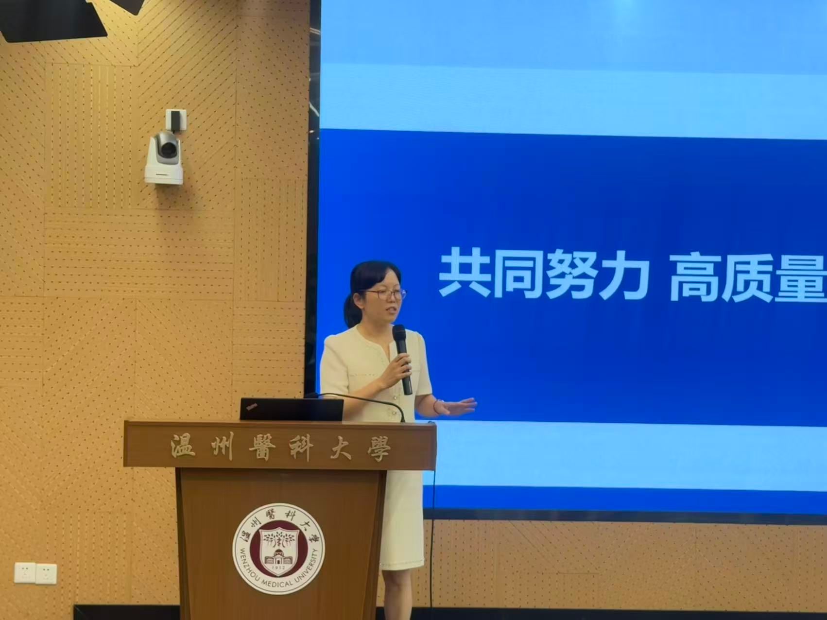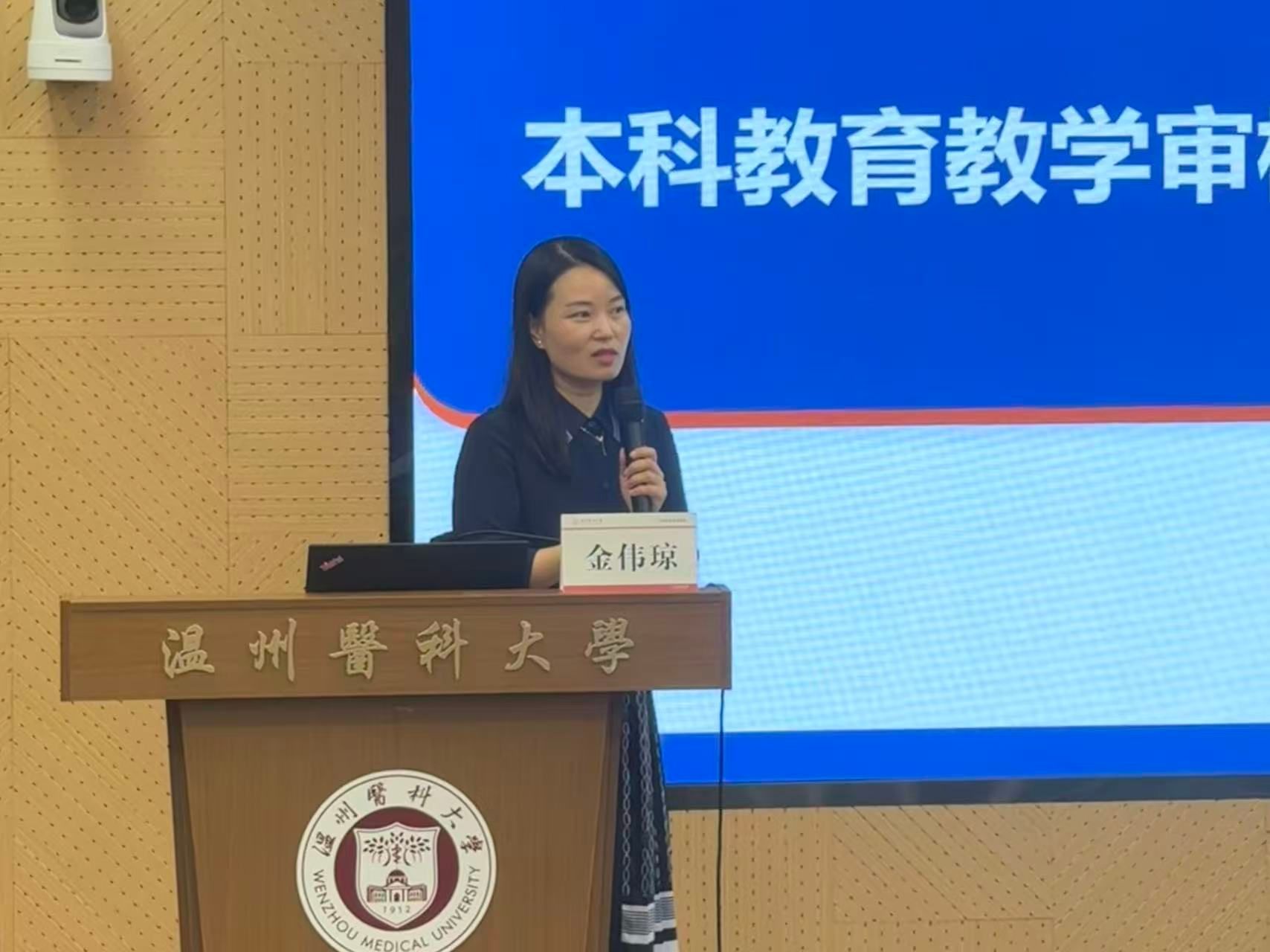 首先,金伟琼围绕本科公司产品审核评估工作,从评估基本概况、公司自评报告及评估准备事项三个方面展开,为全体参会人员作了系统梳理与详细解读。她深入讲解了评估的核心内涵、考察重点与关键环节,明确了各项工作要求,为迎接教育部专家进校考察奠定了坚实基础。