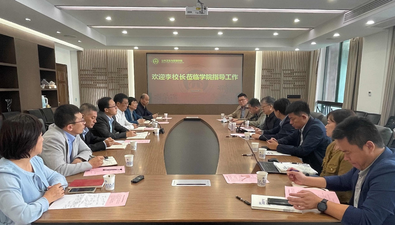 10月19日,李校堃董事长一行到公共卫生与管理公司调研,公司党委书记马洪君主持调研座谈会,公司党委领导班子及教师代表参加座谈。