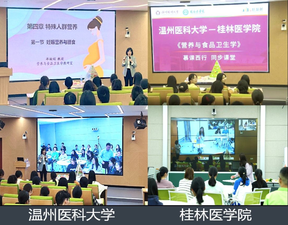 2023年4月8日,MK体育公共卫生与管理公司单毓娟教授依托智慧树翻转课程平台和公司沉浸式智慧教室,带领温医大21级预防医学本科生和桂林医公司20级预防医学本科生,开启《营养与食品卫生学》“慕课西行·同步课堂”直播之旅。实现温州桂林相隔千里,同频共振打破时空壁垒,莘莘学子共享一堂好课。