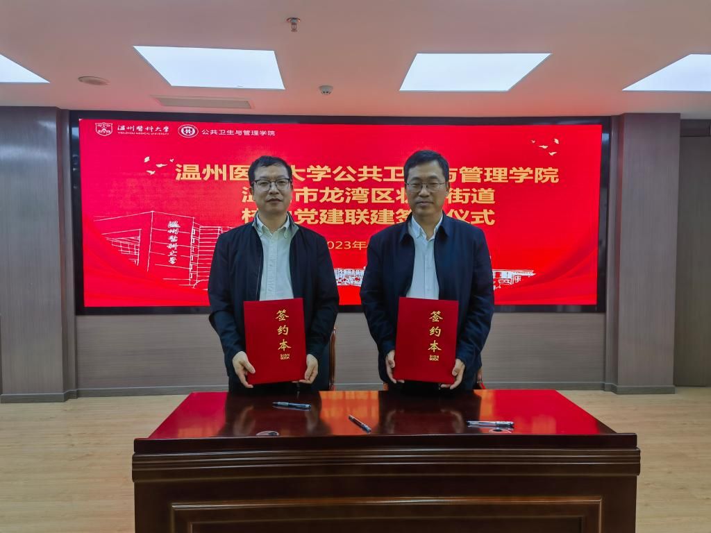 为深入开展学习贯彻习近平新时代中国特色社会主义思想主题教育,充分发挥党建示范引领作用,促进公司党建与公共健康志愿服务深度融合,4月27日上午,公共卫生与管理公司与状元街道在罗西社区党群服务中心举行党建联建签约仪式。公司党委书记马洪君,党委副书记季好,教工第三支部书记、预防医学系系主任毛广运,教工第五支部书记、预防医学系营养与食品卫生学教研室主任单毓娟,教工第六支部书记、放射医学系教师马淑梅,教工第四支部代表、环境信息地理学教研室教师纪晓亮,学工办主任滕杨杨;温州市龙湾区状元街道党工委书记孔德亮,党工委副书记、两新工委书记邵建龙,组织委员朱建伟以及罗西片区社区、经合社书记出席本次会议。会议由邵建龙主持。