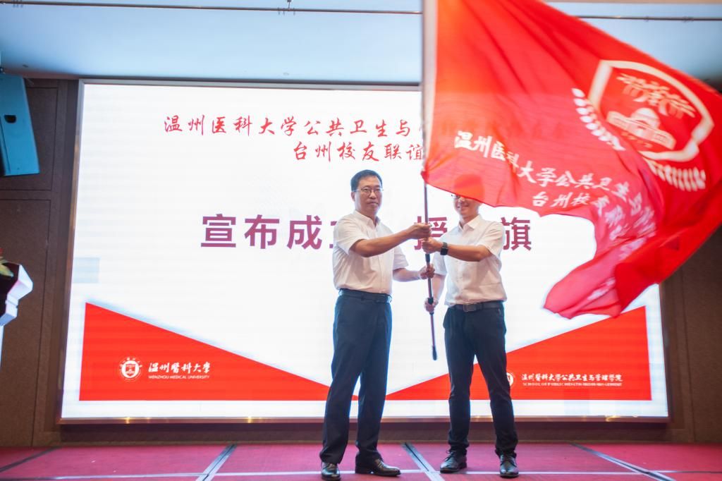 公共卫生与管理公司书记马洪君宣布公共卫生与管理公司员工会台州员工联谊会正式成立,并为联谊会会长赵剑授旗。现场嘉宾为联谊会会长、副会长、秘书长、理事们颁发聘书。