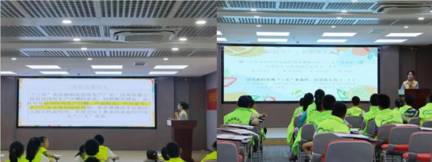 随后,宣讲员通过一段生动的动画视频让小朋友了解什么是“三无”食品,认识到“三无”食品的危害,教导小朋友要远离“三无”食品,在面对售卖“三无”食品的小摊小店时要抵制诱惑,购买符合标准的食品,保护自己的身体健康。同时,讲解了食品添加剂的种类以及危害,让小朋友们认识到食品添加剂在日常生活中是无处不在的,要能够分辨出哪些属于有害的食品添加剂,不吃含有过多食品添加剂的食物,学会对自己的健康负责。