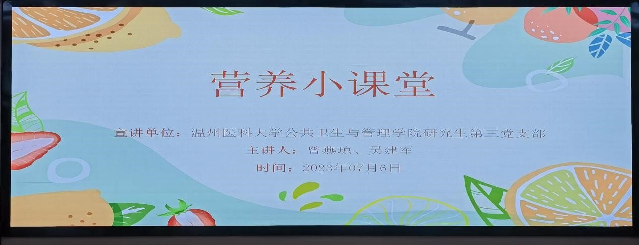 为积极响应以“学思想、当先锋、促践行”为主题深入开展“红七月·服务月”活动号召,7月6日上午,公司研究生第三党支部围绕“共享社·幸福里”建设重点工作以及“一老一小一特”等重点人群需求,前往龙湾区罗西社区党群服务中心,开展了“营养小课堂”健康知识科普宣教活动,旨在引导小朋友建立正确的饮食观念、学会辨别并远离“三无食品”、正确认识食品添加剂的利弊等等,促进儿童健康成长。