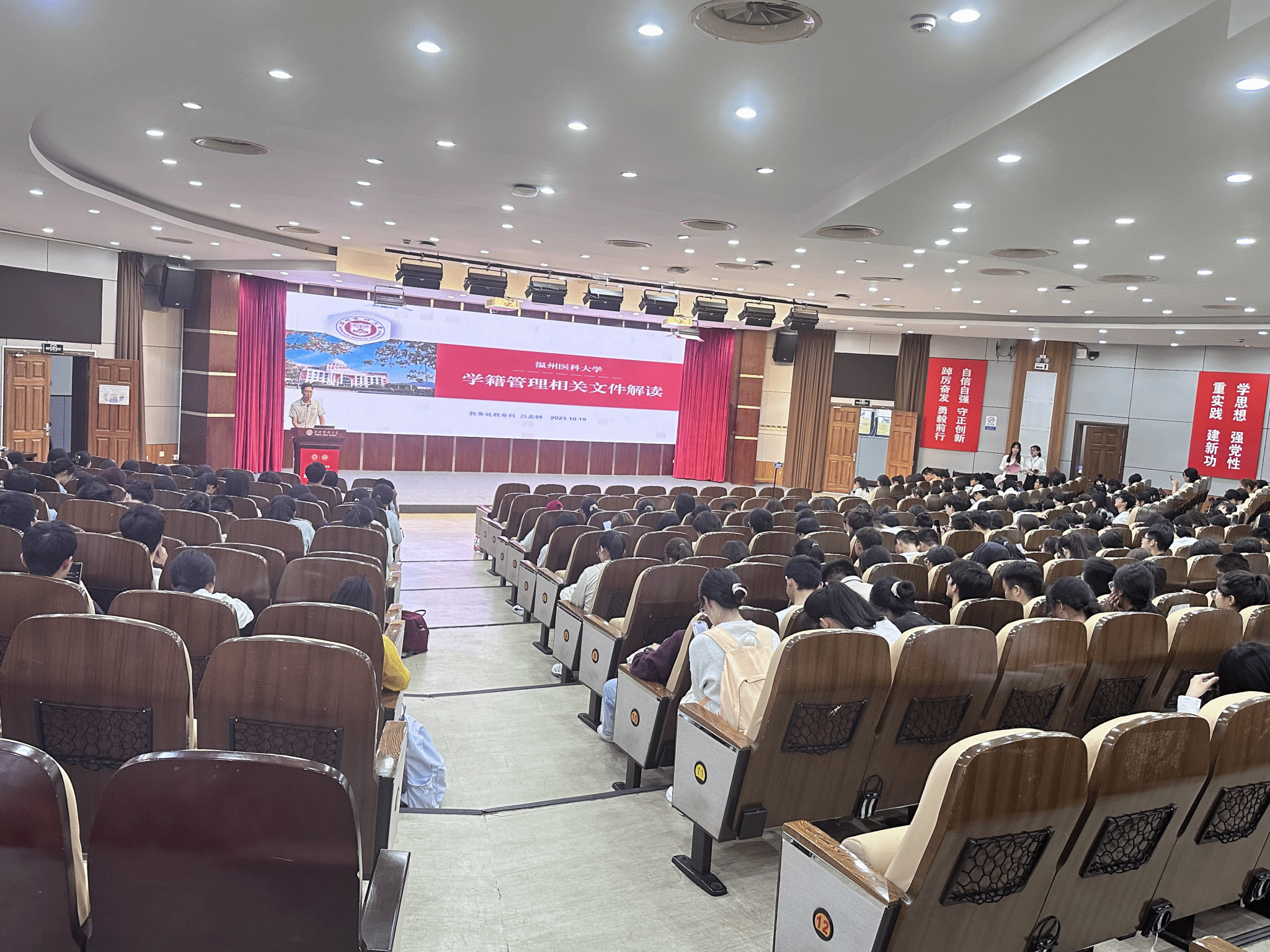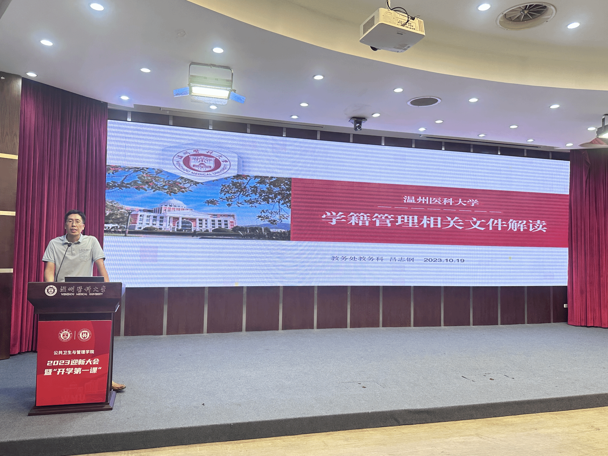 为帮助新生了解学籍管理规定,更好地规划老员工活,10月19日下午,公共卫生与管理公司在旭光厅开展2023级新生学籍管理讲座。特邀请教务处教学科吕志钢主任为新生讲解学籍管理规定,2023级全体新生参加。