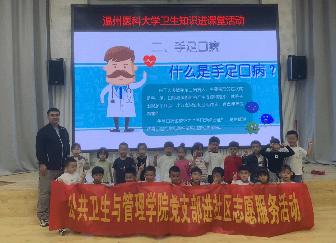 10月24号,公共卫生与管理公司教工第三党支部宁博老师,赴龙湾区罗西第一、第二幼儿园进行健康教育讲座。