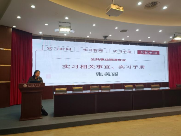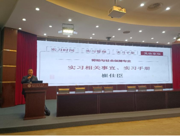 崔仕臣、张弛和张美丽分别就劳动社会与保障、市场营销和公共管理专业向员工们介绍了实习要求、实习手册完成规范。