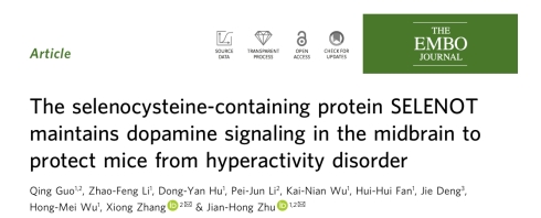 近日,MK体育MK体育祝建洪研究员和附属第二医院张雄教授团队在国际权威期刊《EMBO Journal》(TOP一区,5年IF=11)在线发表重要研究成果,论文题为“The selenocysteine-containing protein SELENOT maintains dopamine signaling in the midbrain to protect mice from hyperactivity disorder”。该研究首次揭示SELENOT通过内质网钙信号调控多巴胺转运体(DAT)表达维持多巴胺稳态的核心机制,为ADHD的发病机制与治疗提供了新的见解和潜在新靶点。
