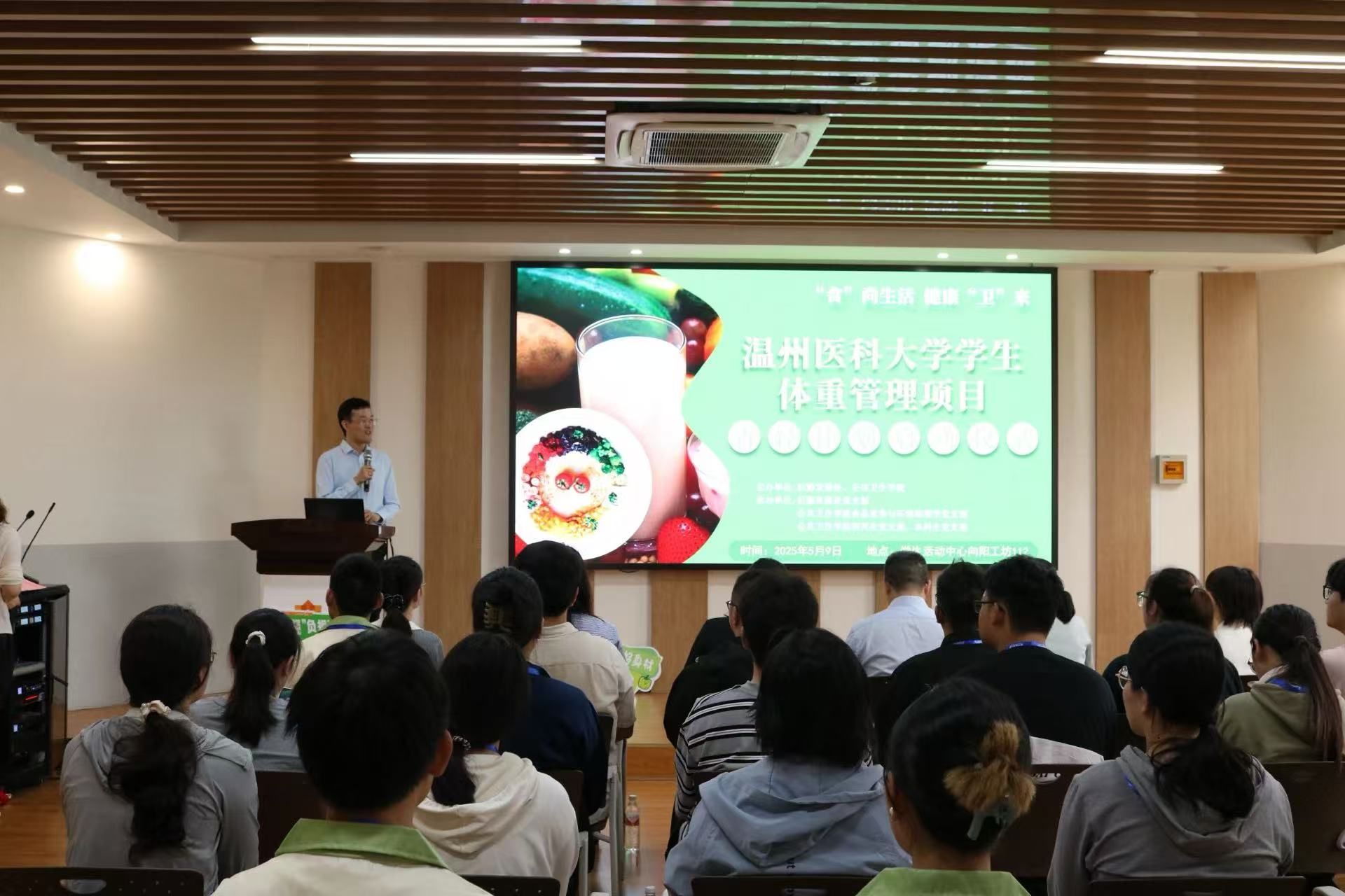 2025年5月9日上午,MK体育员工体重管理项目“青轻计划”启动仪式在员工活动中心向阳工坊举行。后勤发展处处长周建国、副处长李谷,公司党委书记王芳、党委副书记王张叶、营养与食品卫生学系主任单毓娟出席仪式,与近四十名项目参与者及志愿者共同见证项目启动。仪式由营养与食品卫生学系刘志鹏老师主持。