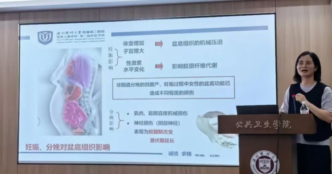 为了让复杂的医学知识变得通俗易懂,王主任精心准备了丰富多样的教学素材。她借助生动形象的图片,将女性盆底的解剖结构清晰地展现在大家眼前。通过精彩的动画演示,盆底肌肉在人体运动、生理活动中的收缩与舒张过程变得一目了然,让大家直观地理解了盆底的功能特点。在讲解常见盆底问题及其高危因素时,她运用形象的比喻将抽象的医学概念具象化。她把盆底肌肉比作一张“吊床”,承载着盆腔内的脏器,一旦这张“吊床”松弛或受损,就会引发一系列盆底问题。同时,她还详细列举了年龄增长、妊娠分娩、站立授课、肥胖等高危因素,让大家清楚地认识到哪些行为和生活习惯可能会对盆底健康造成威胁。