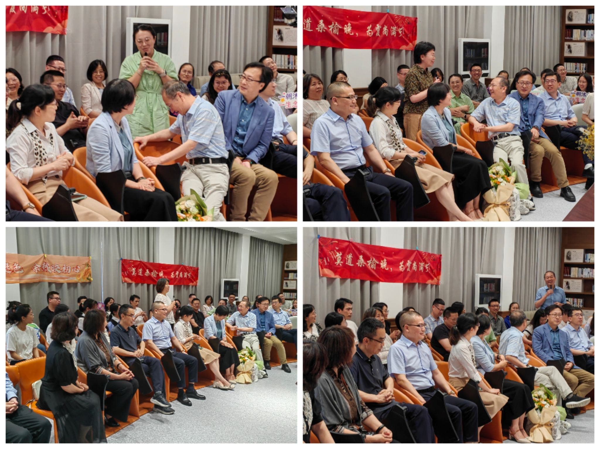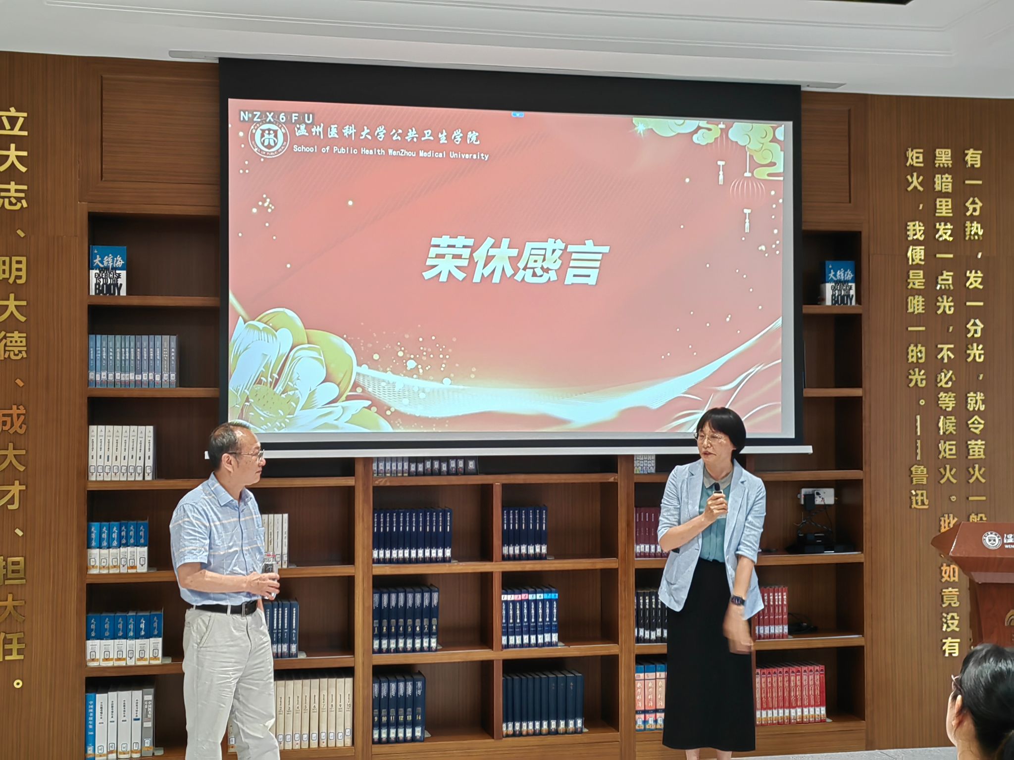 “闫师兄,杨师姐,你们教书育人和严谨科学的风范,永远是我的榜样!”“你们很乐观、平和,待人真诚!”“我非常敬佩敬重你们!”“至今还记得是杨老师亲自开着车来机场接的我!”“特别荣幸,员工时代由您教导我们,工作的时候继续受您教导!”“祝愿两位教授携手开启人生的新篇章!”“身体健康、悠闲自在,享受生活每一天!”“常回家看看!”“新的起点,奔向美好的退休生活!”“新的年轻人会向您二位学习,传承你们的温医精神,师道精神!”在场教职工代表也依次献上祝福,大家围绕日常相处、教学指导、入职接送、职业发展、业余爱好等方面忆往昔、叙家常、诉真情,表达不舍和祝福,朴素而温馨的点滴故事引得许多老师流下了感动的泪水。在公司交流的新疆医科大学MK体育营养与食品卫生学主任教授韩加教授说:“太激动了,我会把今天的收获和感动,一并带回到新疆医科大学!”